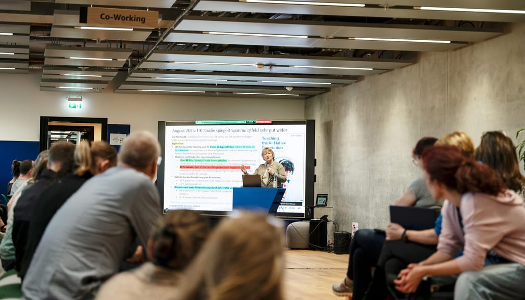 Neben den inspirierenden Workshops wird es im Auditorium eine Live-Aufzeichnung des Podcasts „Kreide.KI.Klartext“ von Diana Knodel und Judith Erlmann geben. Eingeladen als Podcast-Gast ist Maike Howein, Studienrätin an einem Berliner Gymnasium, die das Wahlpflichtfach „LeKI – Lernen mit KI“ ins Leben gerufen hat. Mit zweien ihrer Schüler:innen berichtet sie von der Entstehung des Faches, der Ko-Kreation im gemeinsamen Austausch, ihren Erfahrungen und ihrem stetigen Lernzuwachs.